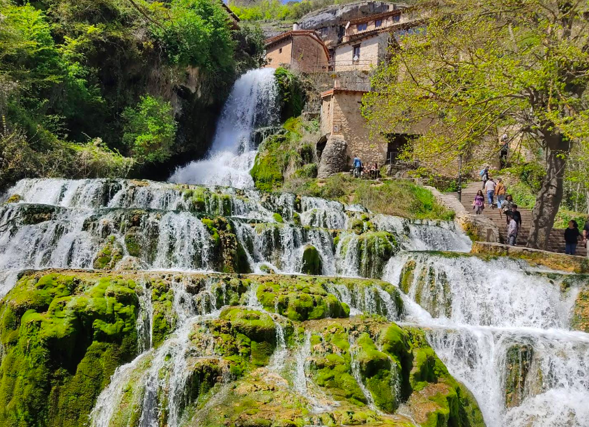 This isn’t a remote wilderness waterfall requiring a long hike. The Cascada de Orbaneja flows right through the village streets, tumbling over travertine rock formations in multiple tiers before plunging into the Ebro River canyon below. Stone houses cling to the cliffs, narrow streets wind around the flowing water, and the whole scene feels like something from a fairy tale.