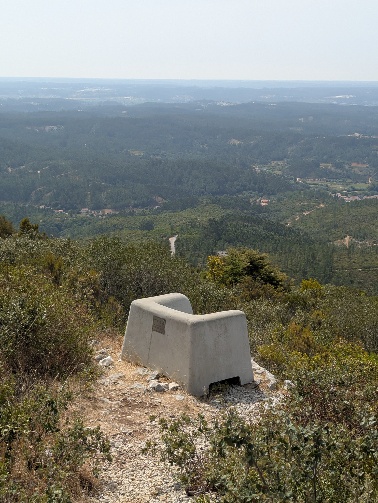 Most viewpoints give you a railing and a panorama. Sofá dos Poios gives you something better: an actual seat. A large concrete armchair — the sofá — is installed right at the edge of the viewpoint, built into the landscape so you can sit down, lean back, and take in the mountain scenery like it was designed for exactly that. Because it was.